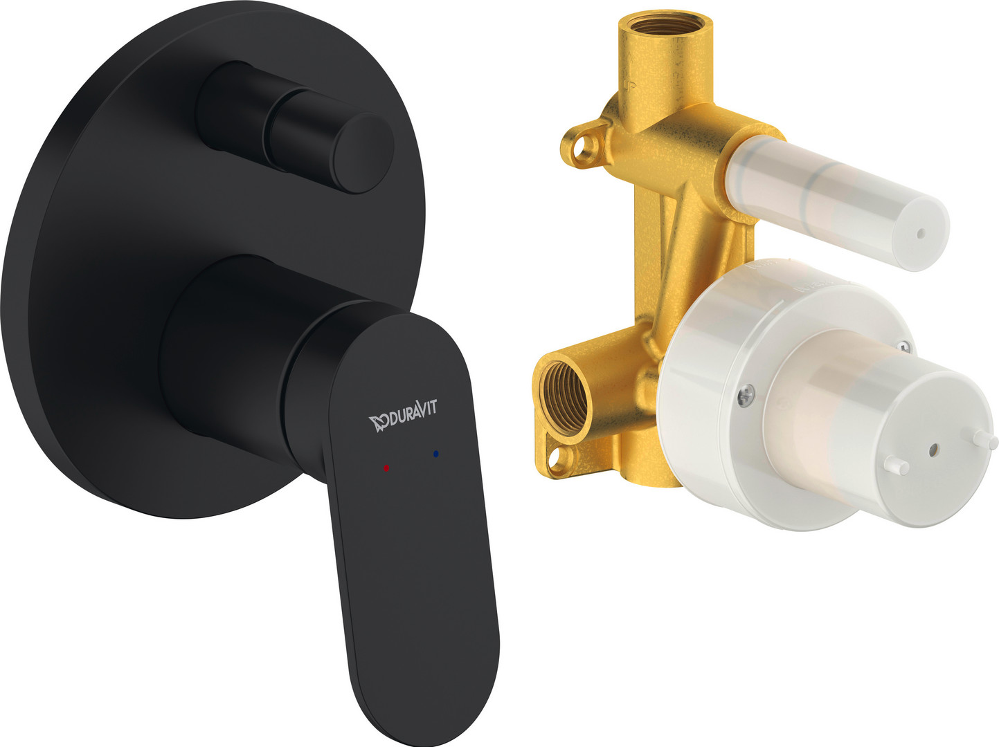 Duravit Fertigmontageset Wave UP-Wannen-Einhebelmischer, Umsteller mit automatischer Rückstellung, schwarz matt W919716