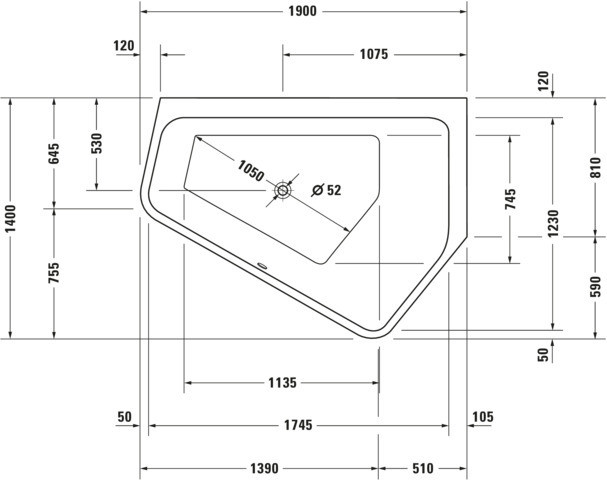 Duravit Fünfeck-Badewanne Paiova 5 190 x 140 x 44 cm, Ecke rechts, Einbauversion, weiß
