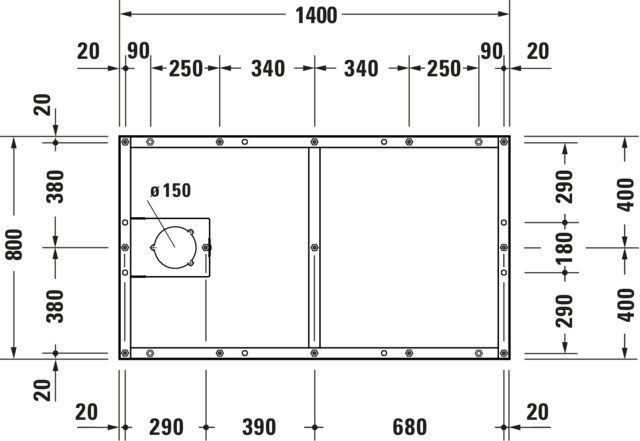 Duravit Fußgestell 140 x 80 cm, höhenverstellbar 7-10cm