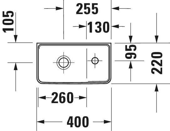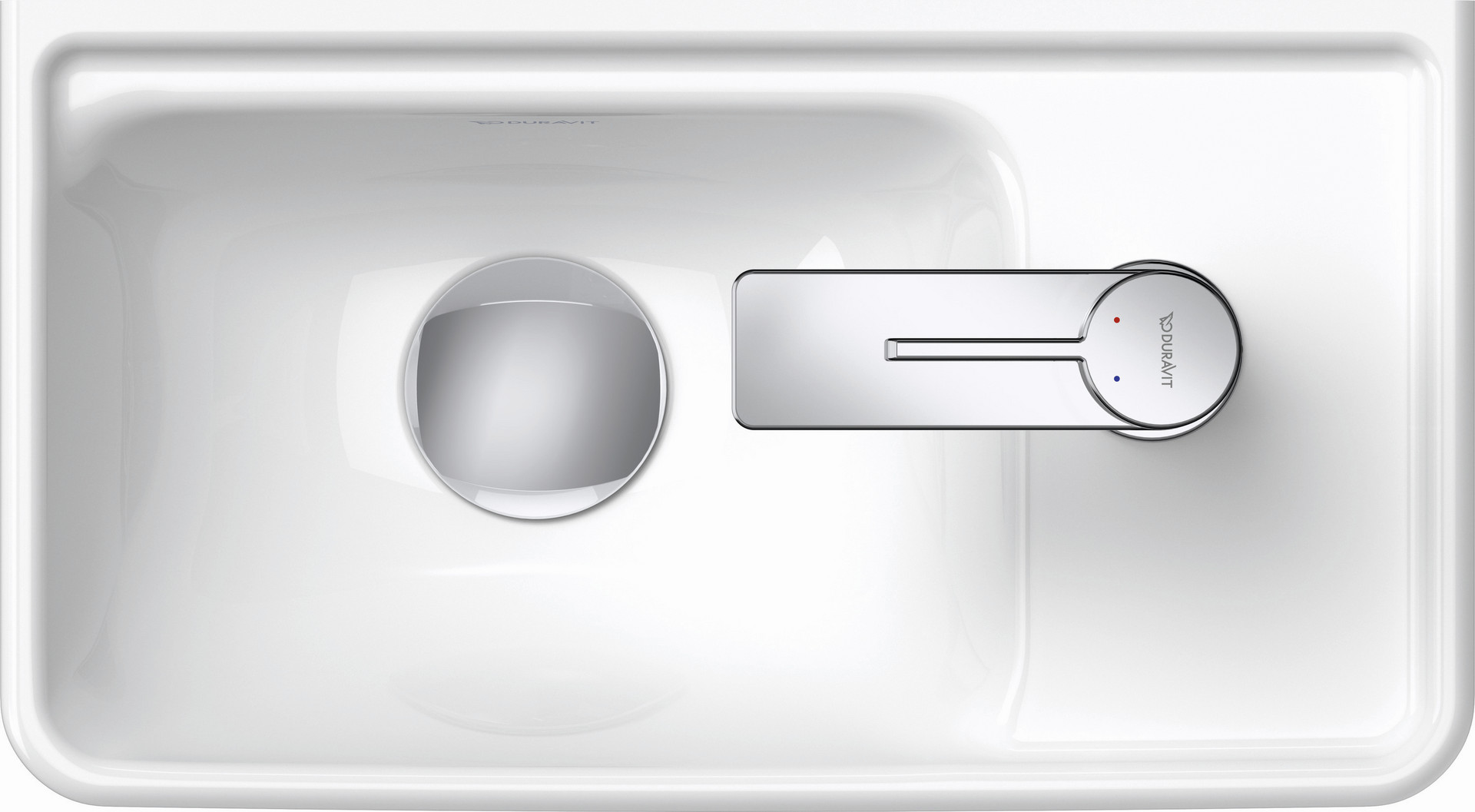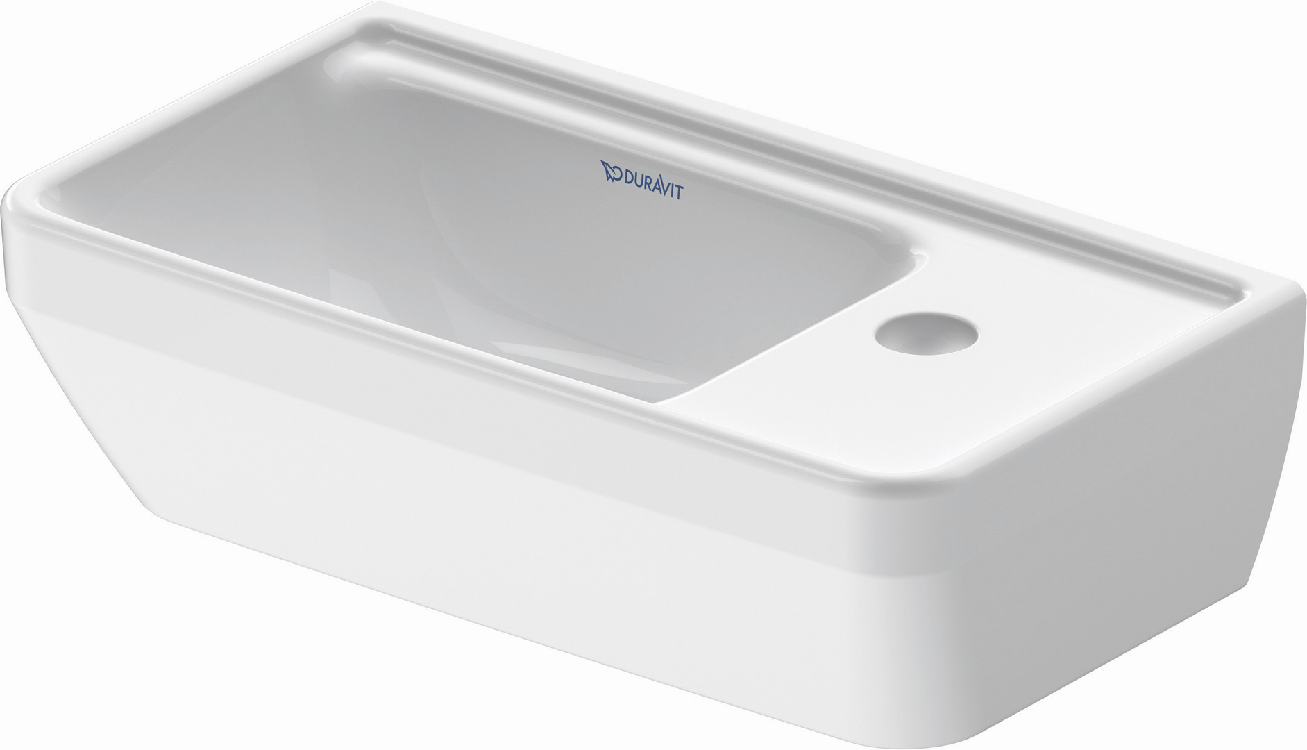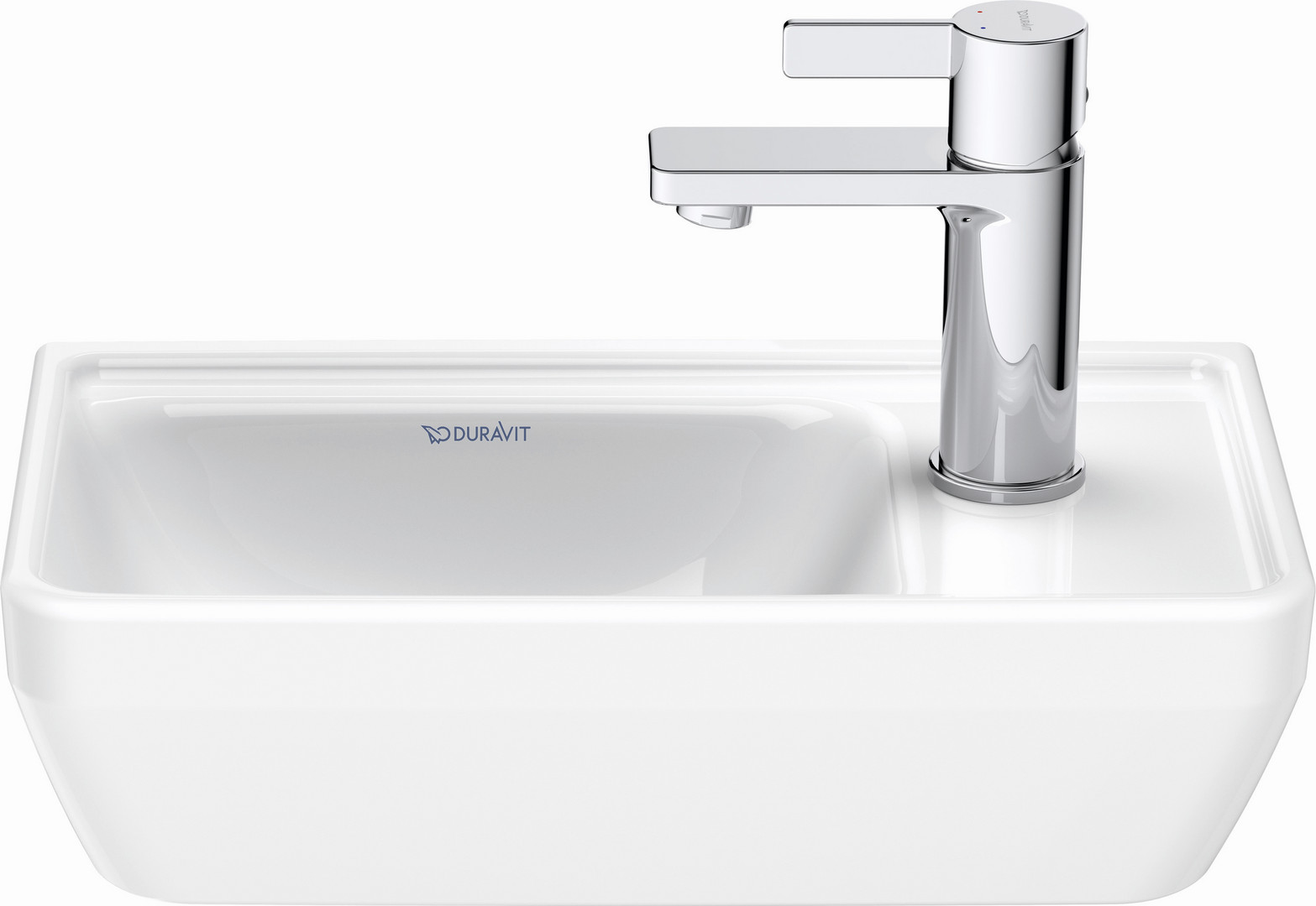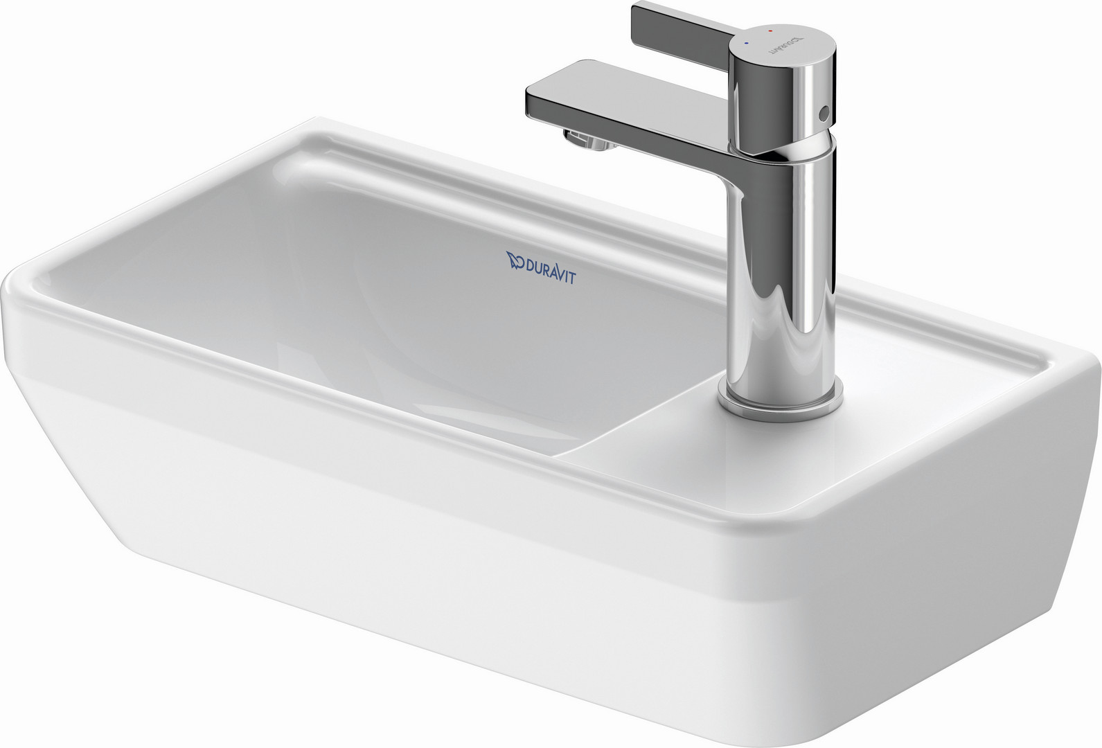 Duravit Handwaschbecken D-Neo 40x22cm, Becken links, ohne Überlauf, mit Hahnlochbank, mit Hahnloch, rechts, weiß