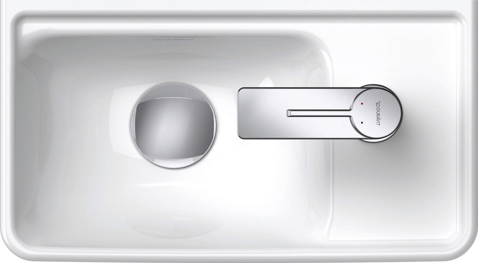 Duravit Handwaschbecken D-Neo 40x22cm, Becken links, ohne Überlauf, mit Hahnlochbank, mit Hahnloch, rechts, weiß W31842