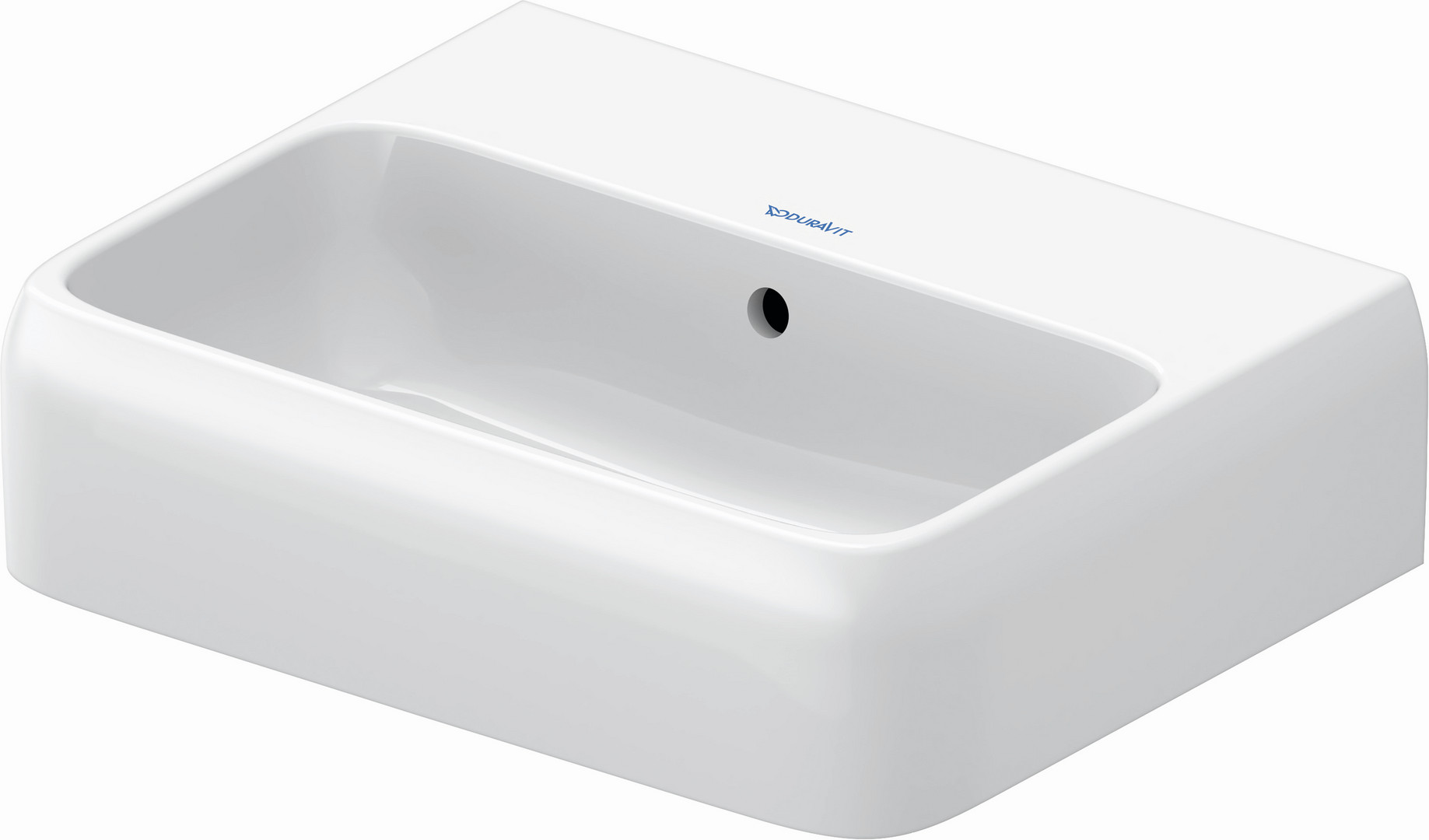 Duravit Handwaschbecken Qatego 45x35cm, ohne Hahnloch, mit Überlauf, Hahnlochbank, weiß Hochglanz W33077