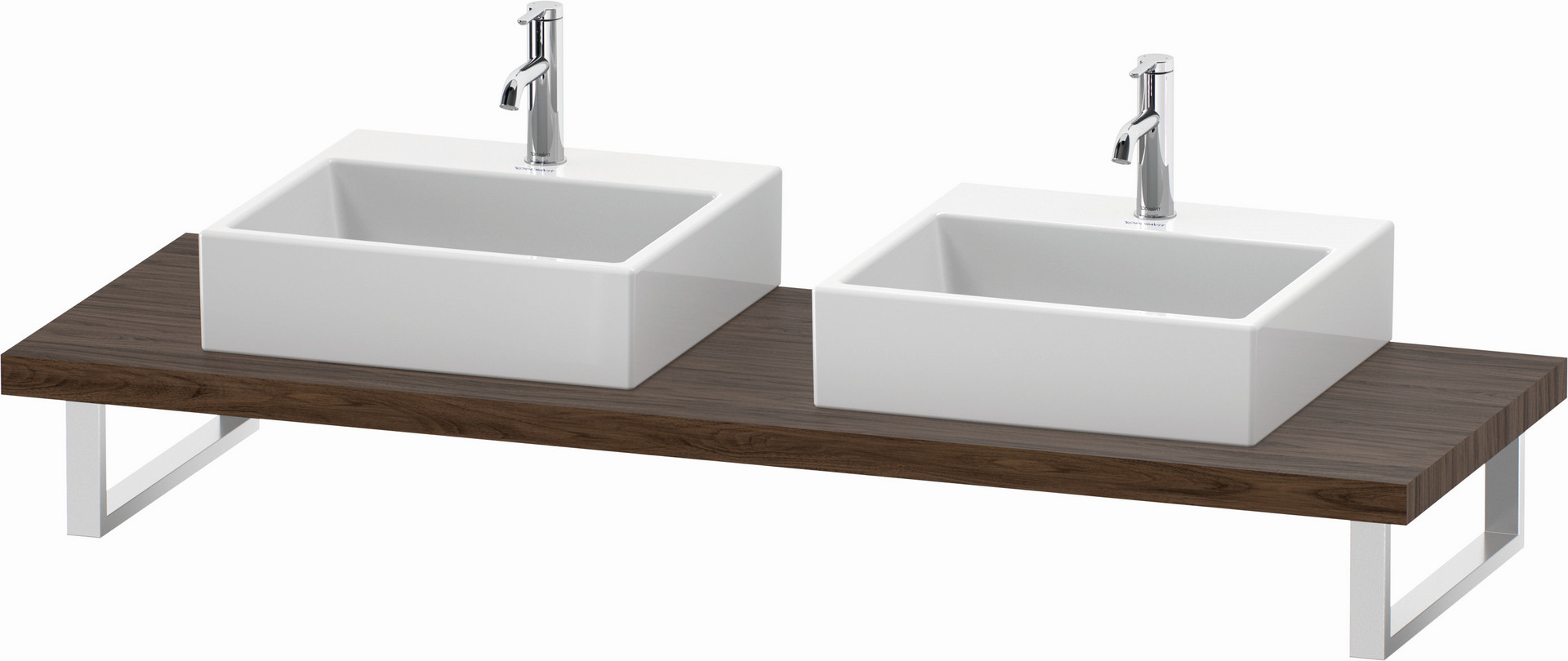 Duravit Konsole L-Cube 80-200x55cm, 2 Ausschnitte, Stärke 4.5 cm, nussbaum dunkel