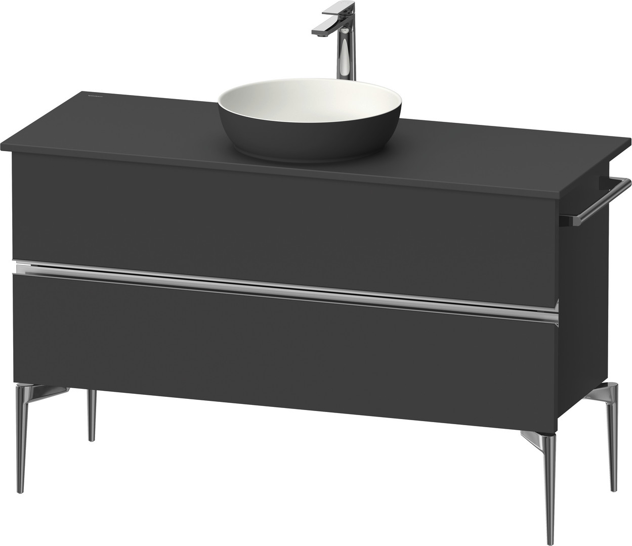 Duravit Konsolenwaschtischunterbau bodenstehend Sivida 124,5 x 54,8 x 47,5 cm, Graphit Matt, 2 Schubkästen, Griff chrom