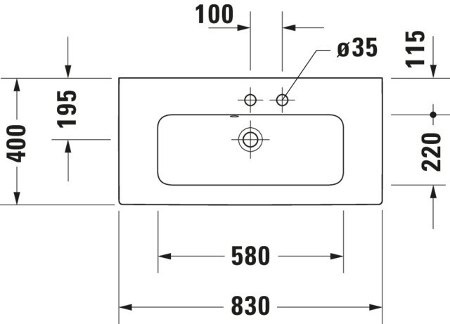 Duravit Möbel-Waschtisch Compact Me by Starck 83 x 40 cm, weiß, mit Hahnloch, Überlauf, Hahnlochbank