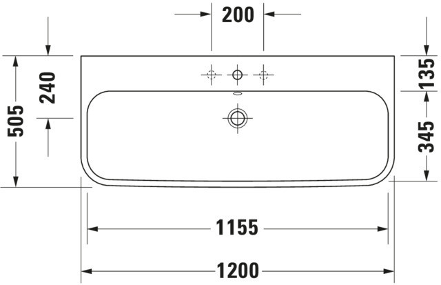 Duravit Möbel-Waschtisch Happy D.2 120 x 50,5 cm, weiß, mit Hahnloch, Überlauf, Hahnlochbank