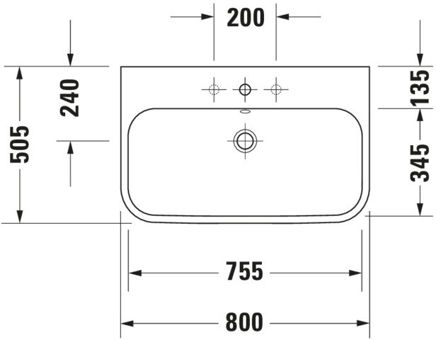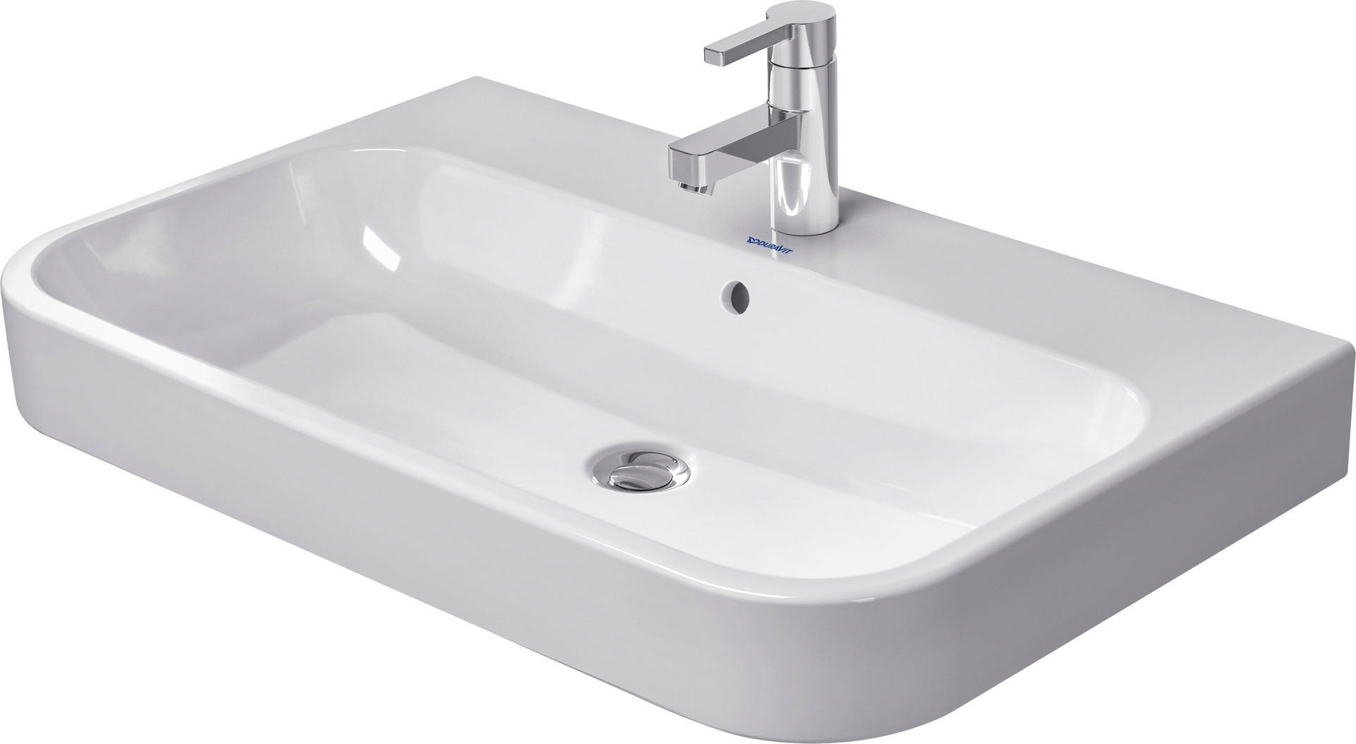 Duravit Möbel-Waschtisch Happy D.2 80 x 50,5 cm, weiß, geschliffen, mit 3 Hahnlöcher, mit Überlauf und Hahnlochbank W31653