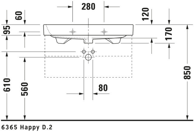 Duravit Möbel-Waschtisch Happy D.2 65 x 50,5 cm, weiß, geschliffen, mit 3 Hahnlöcher, mit Überlauf und Hahnlochbank W31647