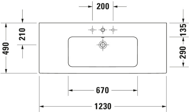 Duravit Möbel-Waschtisch Me by Starck 123 x 49 cm, weiß, mit 2 Hahnlöcher, Überlauf, Hahnlochbank