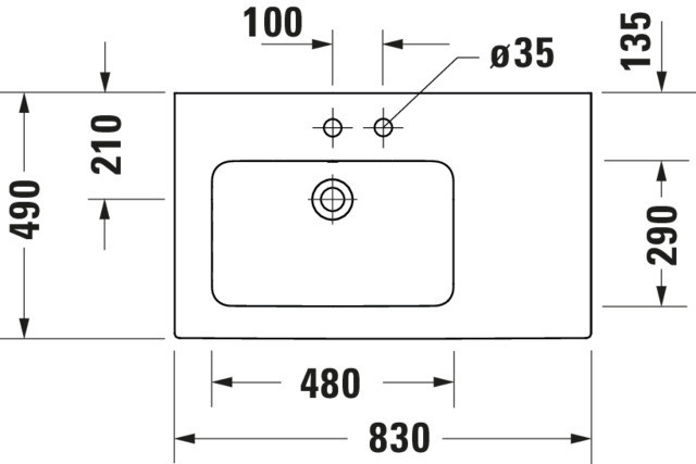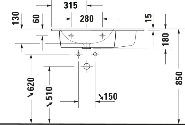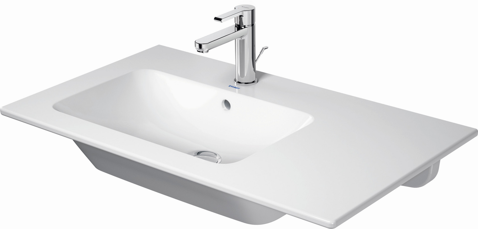 Duravit Möbel-Waschtisch Me by Starck 83x49cm, asymmetrisch, Becken links, mit Überlauf, Hahnlochbank, ohne Hahnloch, weiß