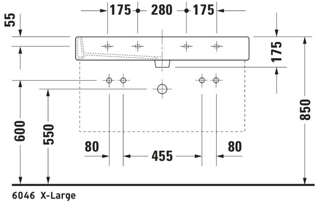 Unterseite glasiert, zur Befestigung von Waschtischen ab der Größe 100 cm werden zwei Befestigungen Artikel Nr. 6951000000 benötigt