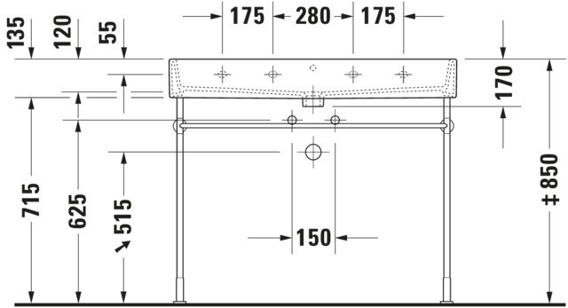 Duravit Möbel-Waschtisch Vero Air 100 x 47 cm, weiß, mit 3 Hahnlöcher, mit Überlauf, mit Hahnlochbank