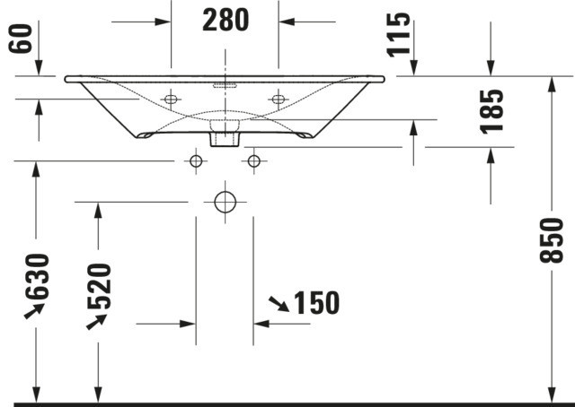 Unterseite glasiert, mit Push-Open Ventil mit keramischer Ventilabdeckhaube, zur Befestigung von Waschtischen ab der Größe 100 cm werden zwei Befestigungen Artikel Nr. 6951000000 benötigt, 234410 und 234412 Raumsparsiphon wird empfohlen in Verbindung mit Waschtischunterbau