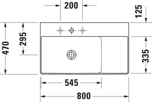 Duravit Möbel-Waschtisch asymmetrisch DuraSquare 80x47cm, ohne Überlauf, mit Hahnlochbank, Becken links, ohne Hahnloch, weiß W32625