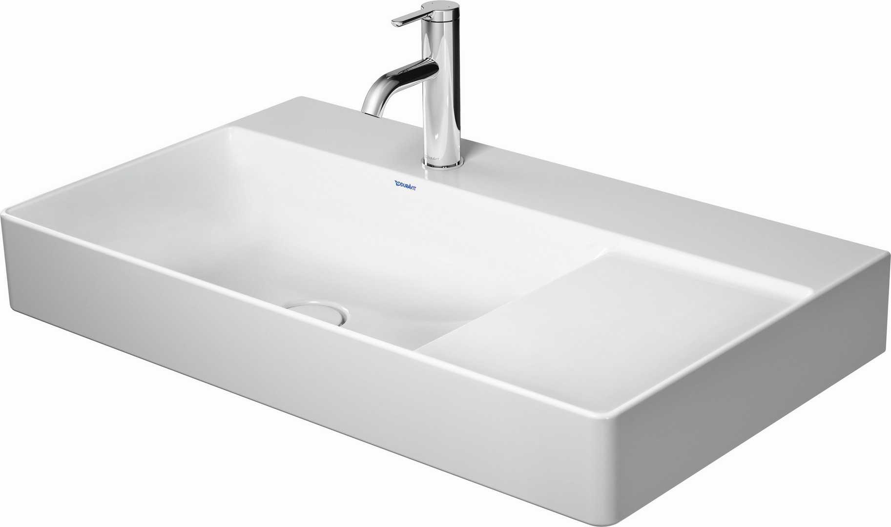 Duravit Möbel-Waschtisch asymmetrisch DuraSquare 80x47cm, ohne Überlauf, mit Hahnlochbank, Becken links, ohne Hahnloch, weiß