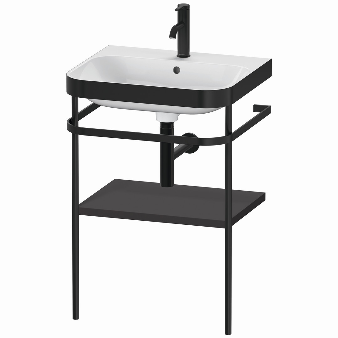 Duravit Möbelwaschtisch-Kombination Happy D.2 Plus 57,5 x 49 cm, 1 Hahnloch, graphit supermatt, mit Metallkonsole