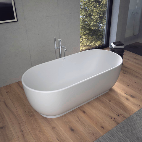 zentraler Ablauf, mit nahtloser Verkleidung, Material Mineralguss, Materialart DuraSolid A, Nutzinhalt 165/252 l, mit Fußgestell, Ab- und Überlaufgarnitur