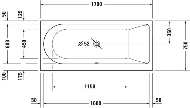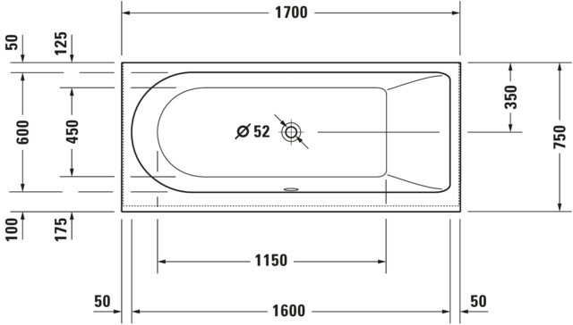 Duravit Rechteck-Badewanne Darling New 170 x 75 x 46 cm, Rückenschräge rechts, weiß