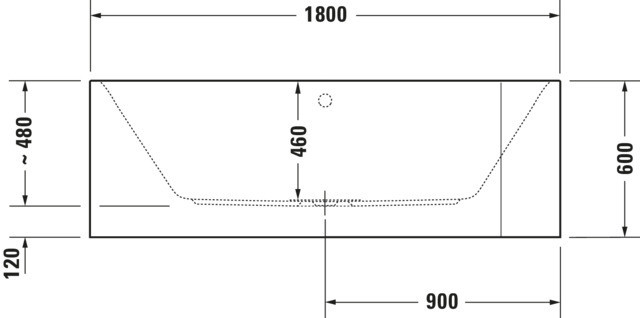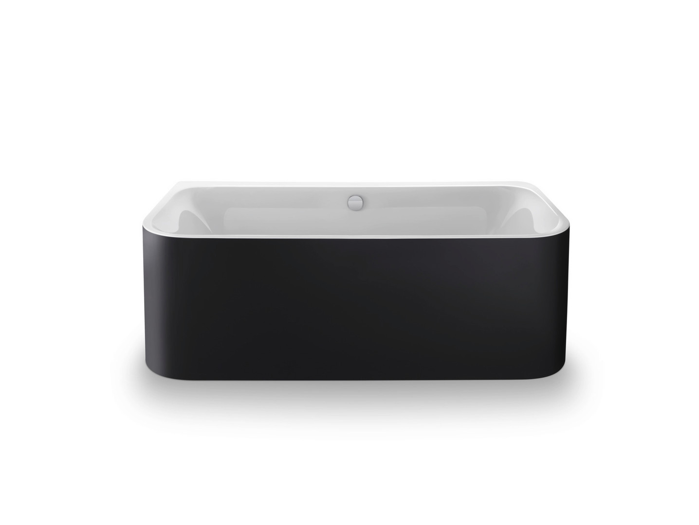 2 Rückenschrägen, zentraler Ablauf, mit angeformter Acrylverkleidung, Material Sanitäracryl, Nutzinhalt 180 l, mit Fußgestell