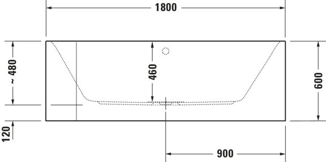 2 Rückenschrägen, zentraler Ablauf, mit angeformter Acrylverkleidung, Material Sanitäracryl, Nutzinhalt 180 l, mit Fußgestell