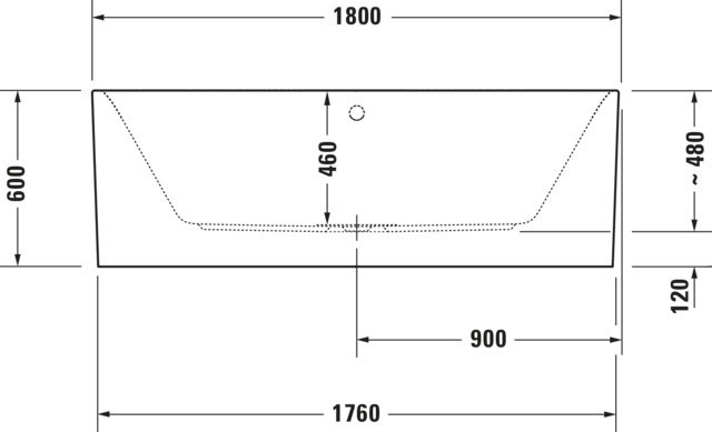 2 Rückenschrägen, zentraler Ablauf, nahtlose Acrylverkleidung, Material Sanitäracryl, Nutzinhalt 170 l, mit Fußgestell