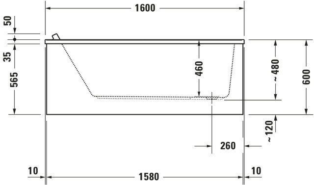 Duravit Rechteck-Badewanne Starck 160 x 70 x 46 cm, Einbauversion, 1 Rückenschräge, weiß W206972