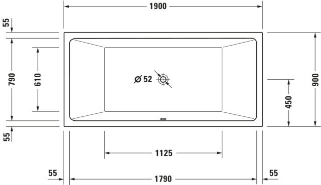 Duravit Rechteck-Badewanne Vero Air 190 x 90 x 46 cm, Einbauversion, 2 Rückenschrägen, weiß W207002