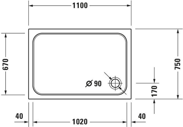 Duravit Rechteck-Duschwanne D-Code 110 x 75 x 8,5 cm, Antislip, weiß