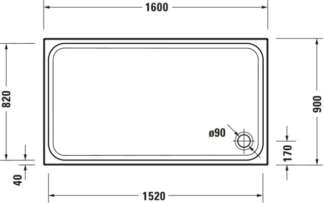 Duravit Rechteck-Duschwanne D-Code 160 x 90 x 8,5 cm, Antislip, weiß W207325