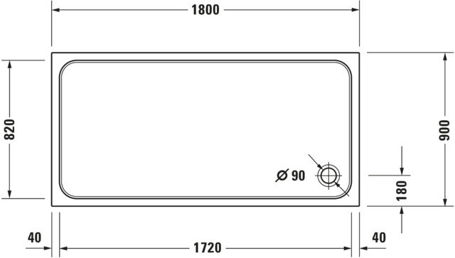 Duravit Rechteck-Duschwanne D-Code 180 x 90 x 8,5 cm, weiß