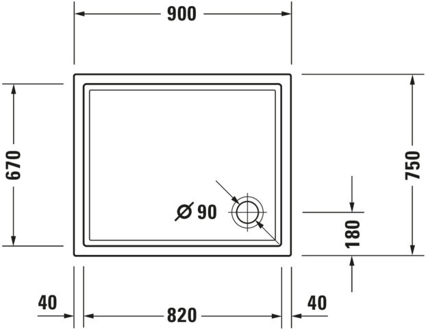 Duravit Rechteck-Duschwanne Starck Slimline 90 x 75 x 4,5 cm, weiß