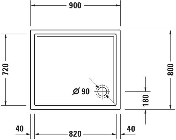 Duravit Rechteck-Duschwanne Starck Slimline 90 x 80 x 4,5 cm, Antislip, weiß W207141