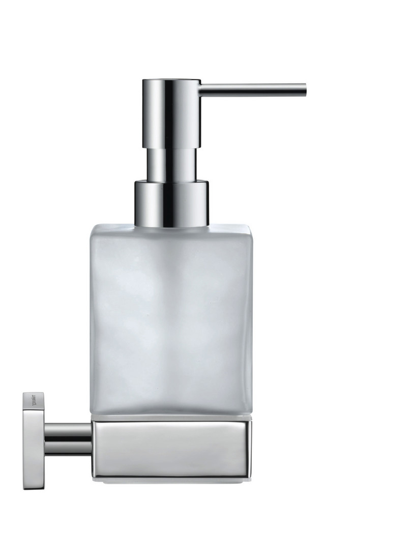 Duravit Seifenspender Karree 7 x 12,4 cm, Wandmontage, Glas weiß matt, Halter chrom