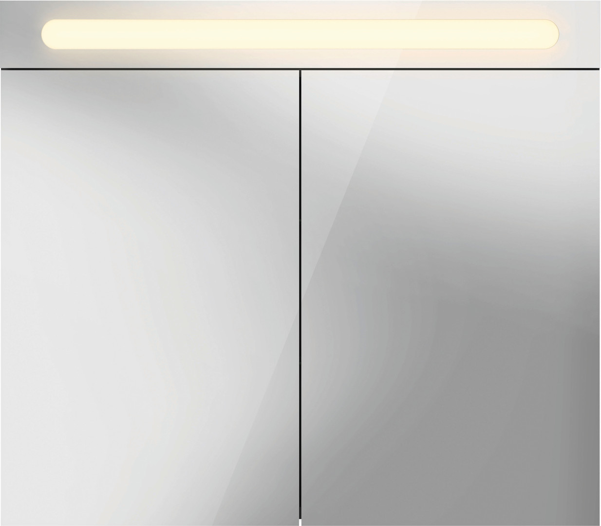 Better Version, IP44, 2 Spiegeltür, 2 Glasfachböden, 1 Schalter- Steckdoseneinheit innen rechts, LED (Lebensdauer >30.000 Stunden), LED fest verbaut, LED Modul 4000 Kelvin Lichtfarbe, Dreischicht-Holzspanplatte, beidseitig mit Schichtstoff (HPL) verpresst, Unterseite (HPL) Farbe Diamantschwarz, ABS-Kanten