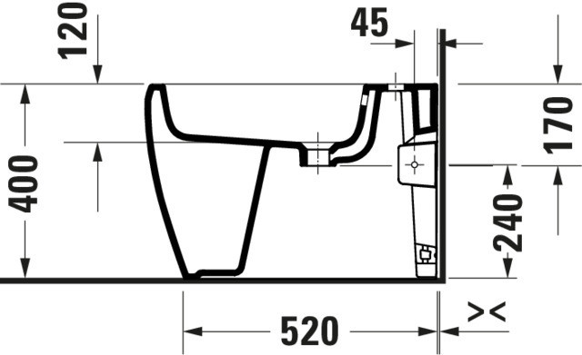 Duravit Stand Bidet Qatego 39x60cm, mit Hahnloch, Überlauf, Hahnlochbank, weiß Hochglanz