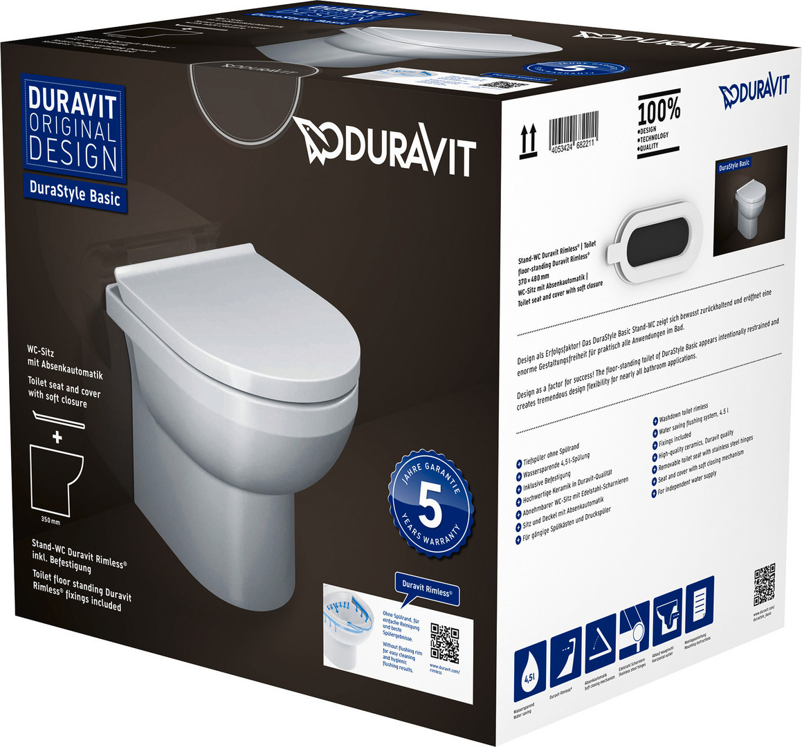 Duravit Stand-Tiefspül-WC Set No. 1 mit WC-Sitz, Rimless, weiß