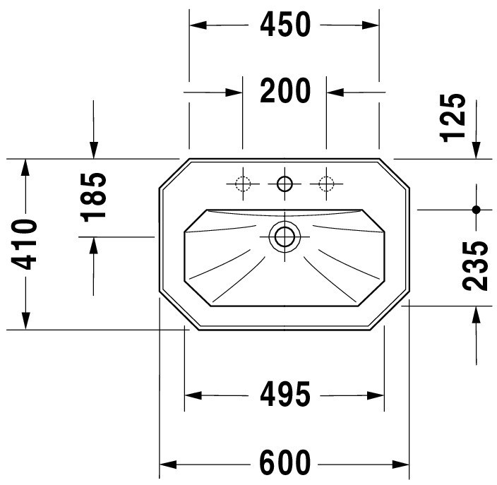 Duravit Waschtisch 1930 60 x 41 cm, weiß, 3 Hahnlöcher, mit Überlauf und Hahnlochbank
