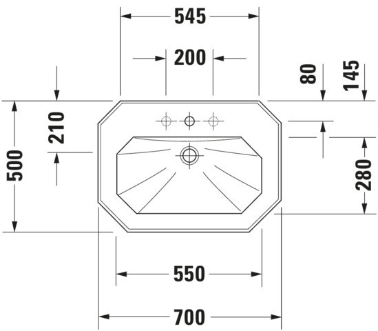 Duravit Waschtisch 1930 70x50cm, 1 Hahnloch, 2 Hahnlöcher vorgestochen, mit Überlauf, Hahnlochbank, weiß