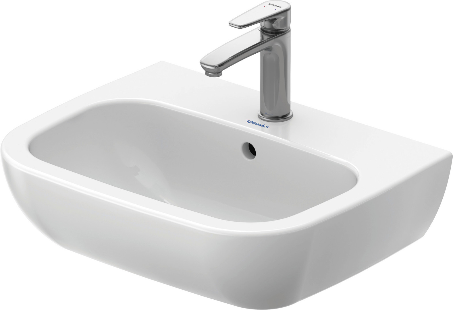 Duravit Waschtisch D-Code 55 x 43 cm, mit Hahnloch, Überlauf, Hahnlochbank, weiß