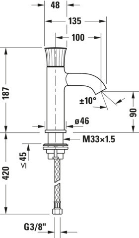 Duravit Waschtisch-Einhebelmischer S White Tulip ohne Zugstangen-Ablaufgarnitur, Ausladung 100mm, chrom