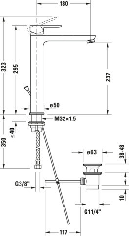 | Aufbauhöhe Unterkante Hahnauslass | 237 mm |