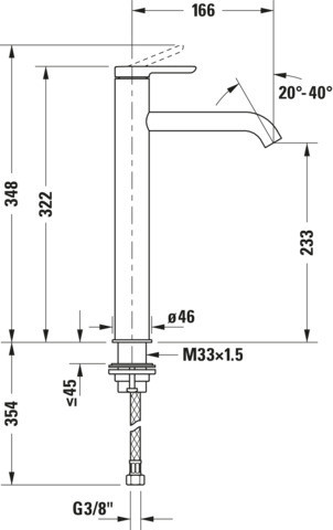 Duravit Waschtisch-Einhebelmischer XL C.1 Ausladung 166mm, ohne Zugstangen-Ablaufgarnitur, chrom