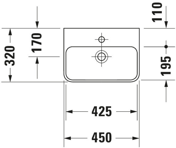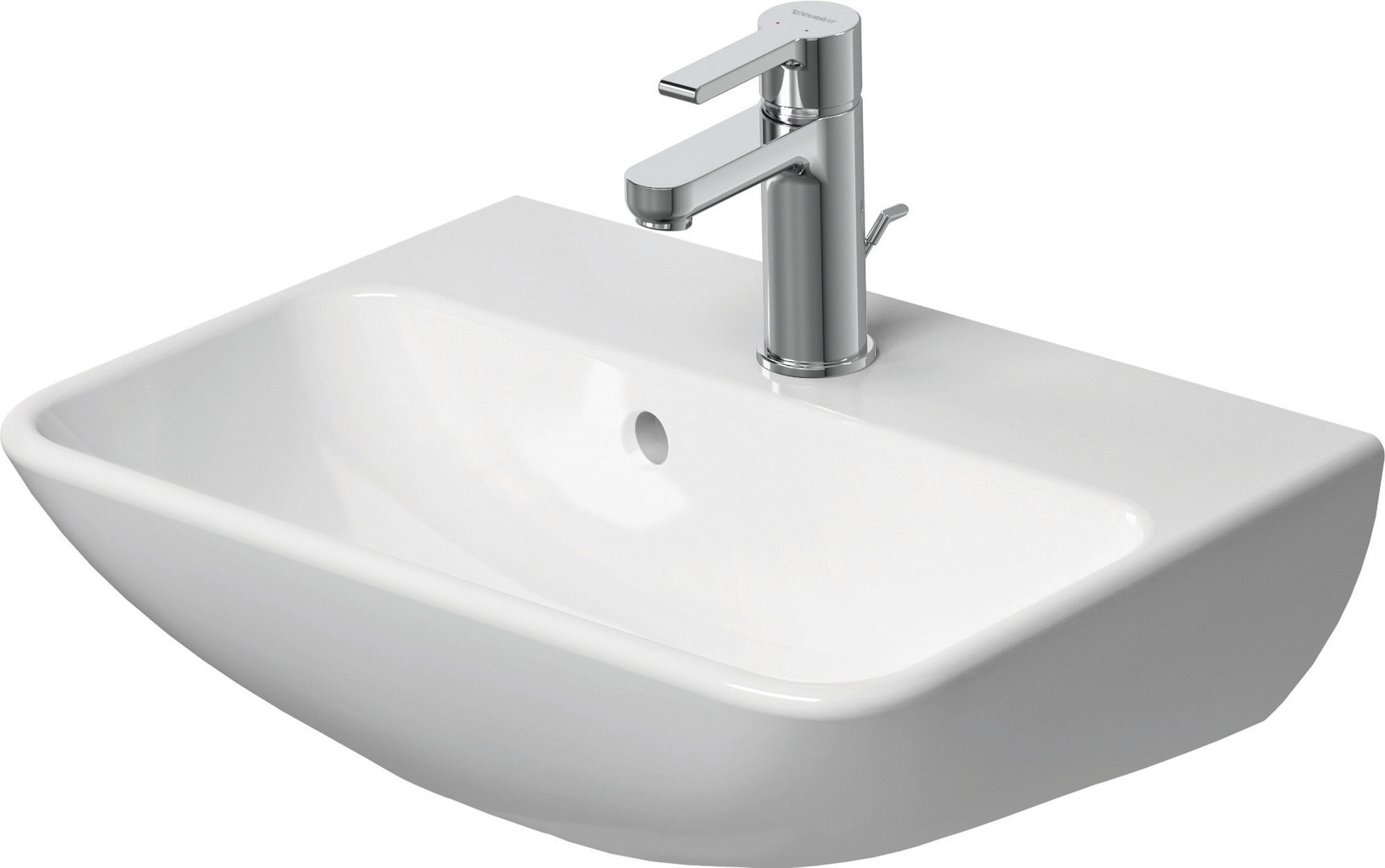 Duravit Waschtisch Me by Starck 45x32cm, mit Hahnloch, Überlauf, Hahnlochbank, weiß seidenmatt