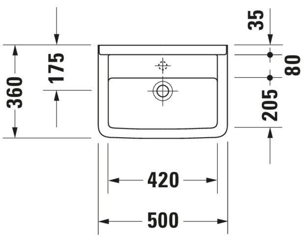 Duravit Waschtisch Starck 3 Med 50 x 36 cm, weiß, Hahnloch-Vorstich, ohne Überlauf, mit Hahnlochbank