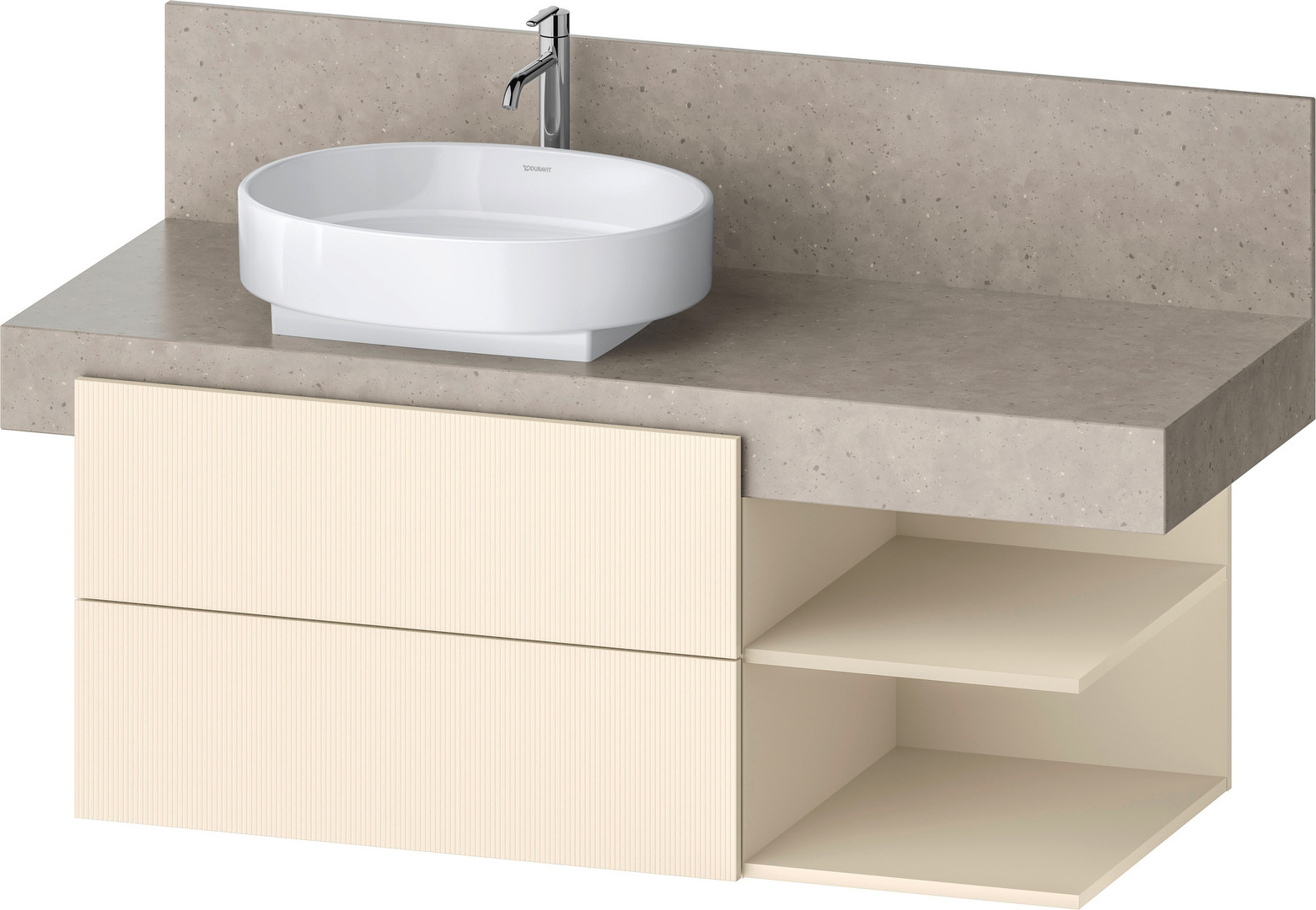 Duravit Waschtisch-Unterschrank Balcoon 120 x 57 x 52,2 cm, Elfenbein strukturiert, 2 Schubkästen, Becken links