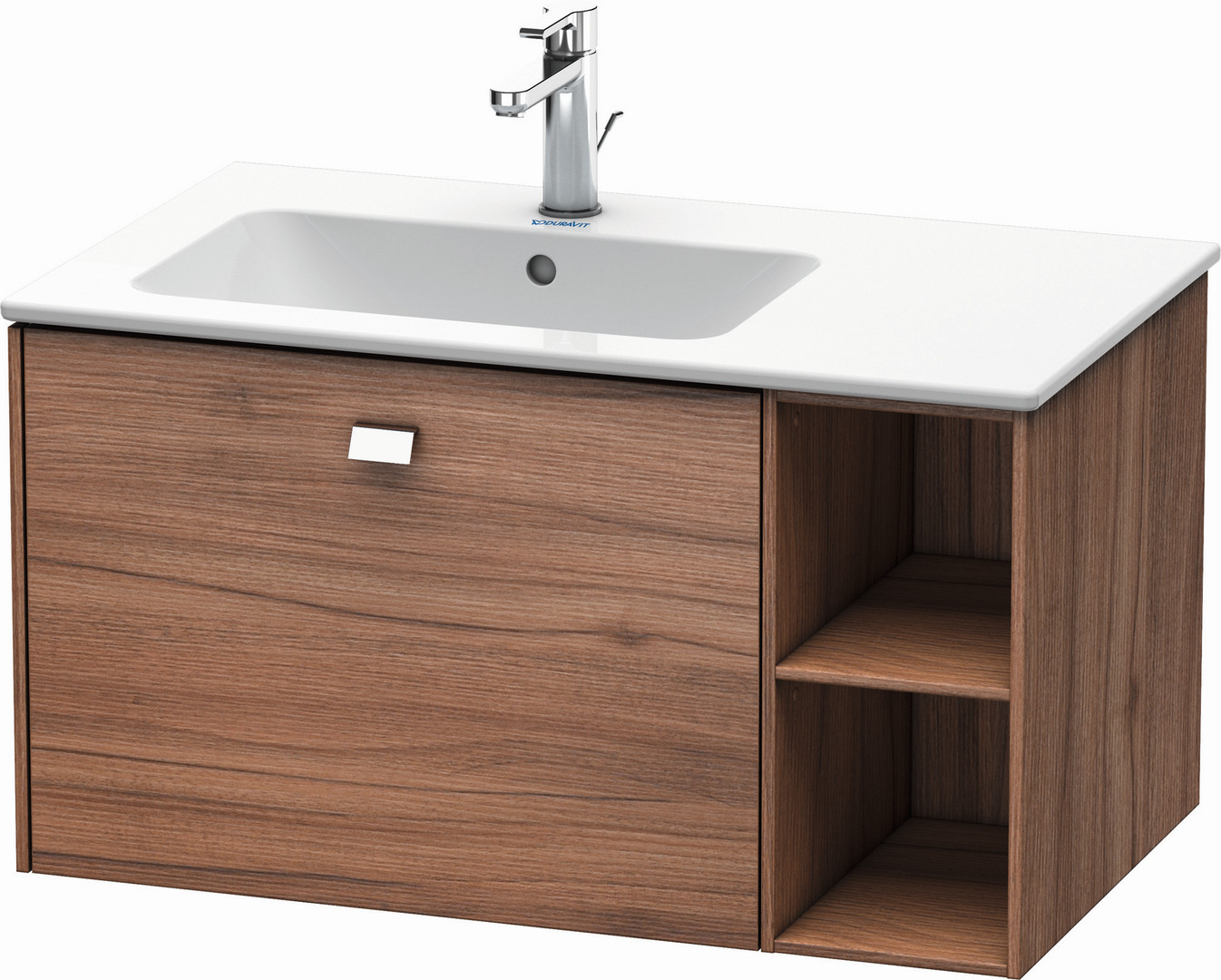 Duravit Waschtisch-Unterschrank Brioso 82x47,9x44,2cm, 1 Auszug, Becken links, chrom/Nussbaum natur