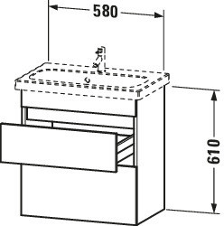 Höhe 61 cm, oberer Schubkasten mit Siphonausschnitt und Schürze, für Waschtische DuraStyle 233755/233763/233778, Inneneinteilung optional möglich, lose einlegbar UV 9955