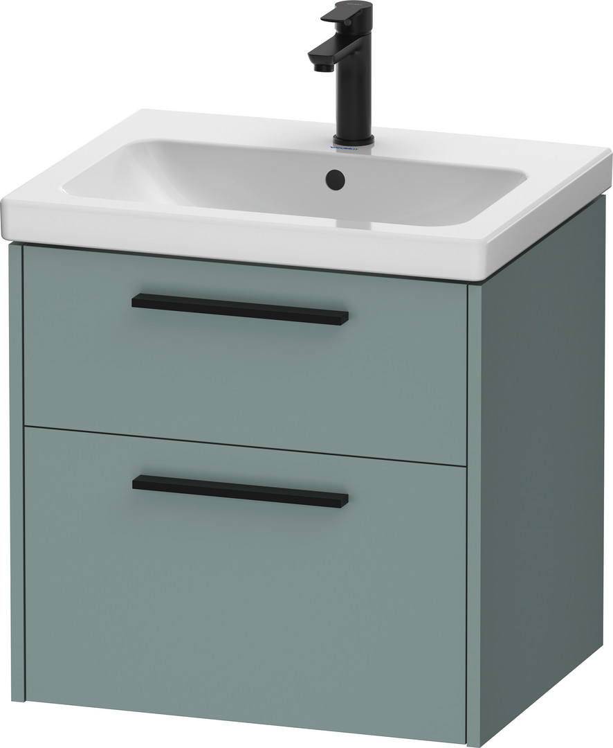 Duravit Waschtisch-Unterschrank D-Code 58,4x55,5x46 cm, 2 Schubkästen, Schürze, Fjordgrün Matt, Griff diamantschwarz