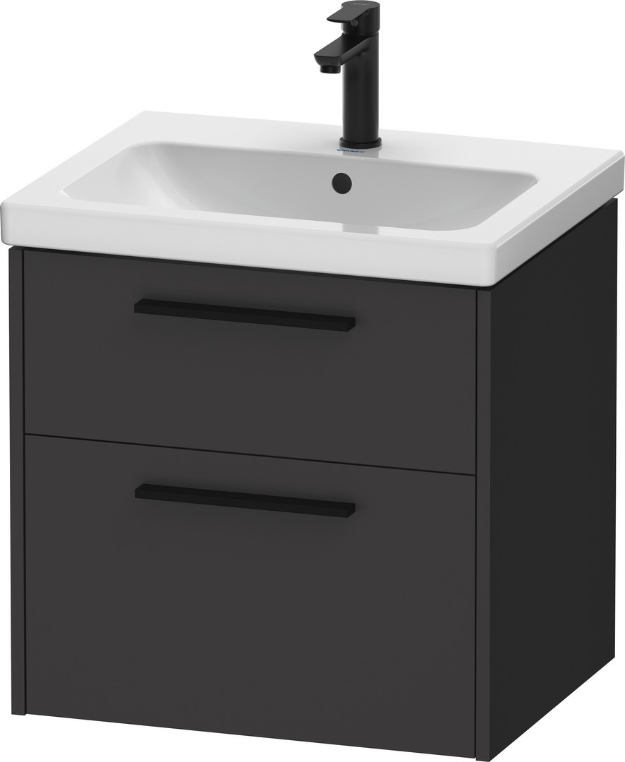 Duravit Waschtisch-Unterschrank D-Code 58,4x55,5x46 cm, 2 Schubkästen, Schürze, Graphit Matt, Griff diamantschwarz