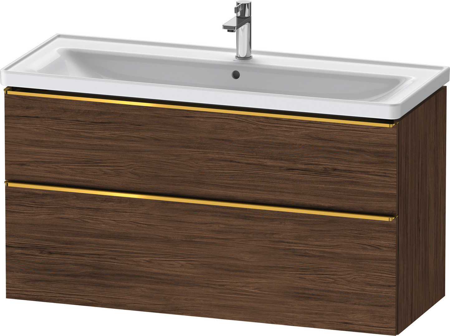 Duravit Waschtisch-Unterschrank D-Neo 118,4x45,2x62,5cm, 2 Auszüge, wandhängend, Gold poliert/Nussbaum Dunkel